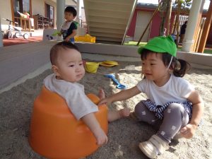 園庭でも仲良く遊んでいます😀
