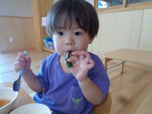 給食では、お友だちのお家からいただいたキュウリも美味しくいただきました🥒✨