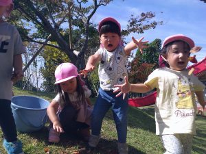 今日は日中良い天気になり、子どもたちは青空の下でのびのびと遊んでいました🌞