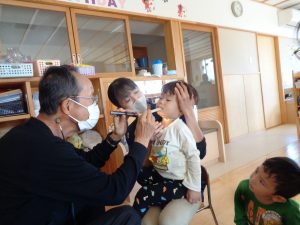 その後はドキドキの内科健診!内科健診の前にはみんなで絵本を見て待っています😊