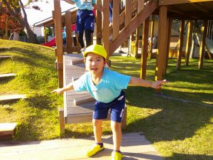 秋晴れの一日で、戸外で沢山遊ぶことが出来て嬉しそうな子ども達💓
