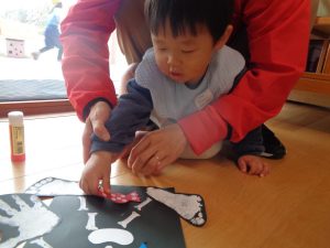 指にくっつきながらも、自分の貼りたいところに貼ることができました✨