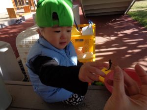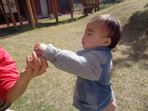 先生が持っているトンボに手を伸ばして、触っていました😊