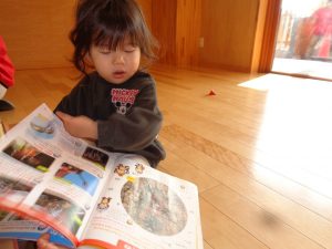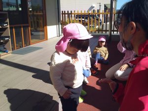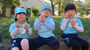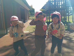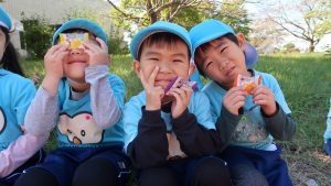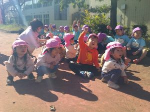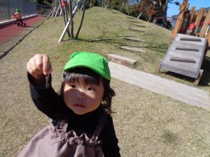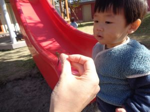 トンボを探して、捕まえるとトンボの羽を持って嬉しそうに「先生、見て!」と言って、持っていました😆