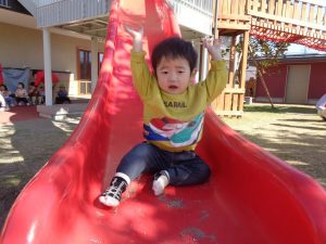 階段を1段1段登った後は、すべり台を楽しむお友だちもいました🍂