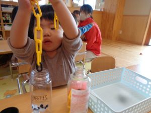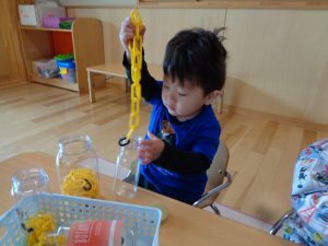 指先を使ってチェーンを入れたり、ポンポンを落としたりと集中して取り組んでいました🌟