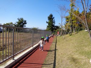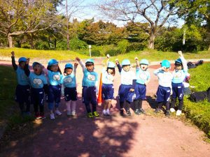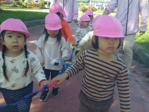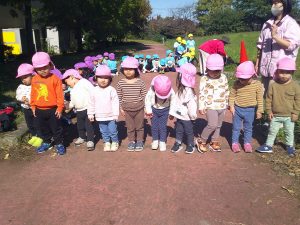 うみ組、だいち組のお友だちに見送られて、緑地公園に出発💨