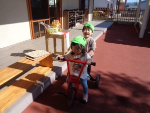 三輪車に乗ったり、砂場遊びをしたり、元気いっぱい遊びました✨✨