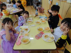 本日は合同でスペシャル給食👻