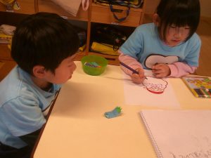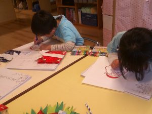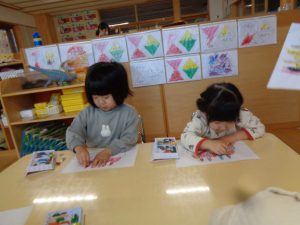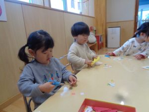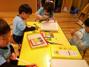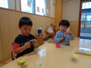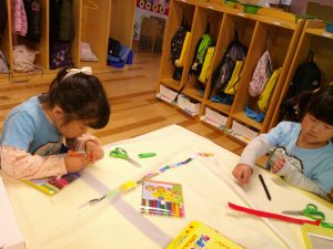 朝はぬりえや製作、ハサミの練習に集中しました✂
