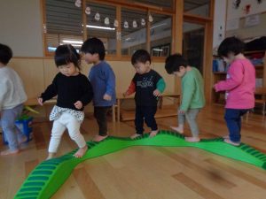 ゆっくりゆっくり。「へびさんの上を歩いてるみたい!!」