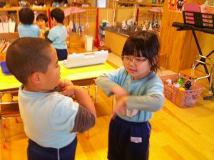 ジャンケンの勝ち負けが楽しい💖子ども達は、「もういっかい!!!」と繰り返しジャンケンしています😊