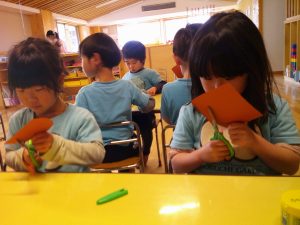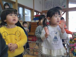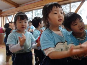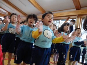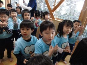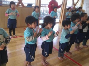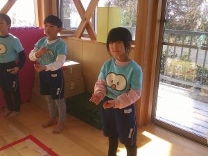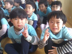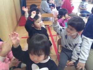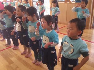 つき組さんは、初めての手話に少し難しさはあるようですが先生の振りをよく見て覚えようと頑張っていました。