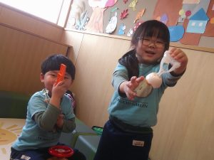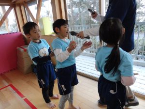 インタビューごっこでは、幼児部さんを真似して