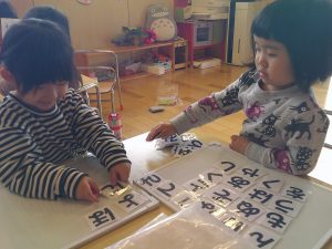 「私もひらがなやる!」とひらがなを声に出しながら