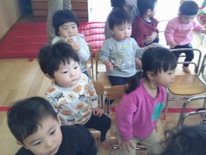 うみ、そらぐみさんに混ざり、一緒に椅子に座ってみました💓