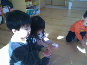 ぎゅっぎゅっと丸めたり、冷たさを感じながら楽しみました😊