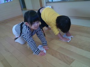 遊び終わったらもちろん雑巾がけをしてピカピカの床にします😊✨