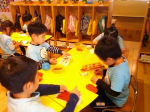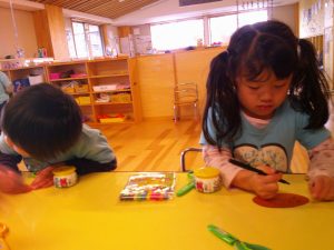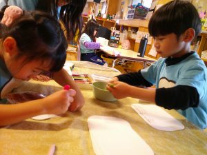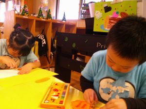 クレヨンでケーキに模様を付けたり、プレートを作ったりと美味しそうなクリスマスケーキが完成しました!(^^)!