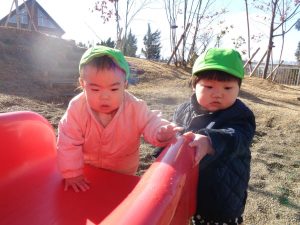 つき組さんはポカポカの園庭でたくさん遊びました🍁