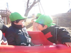 寒い日が続き中々戸外で遊ぶことができなかったため、久しぶりの戸外遊びを満喫しご機嫌な様子でした🌟