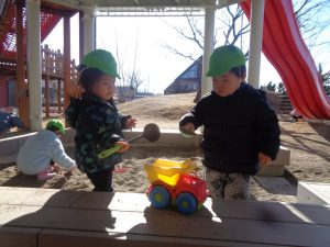 今日は大好きな戸外遊びに行くことが分かると張り切って準備を頑張りました!