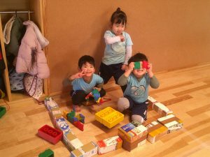 ブロックもお友だちと分け合って遊ぶことができるようになってきたつき組さんです🌝