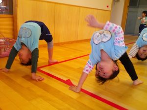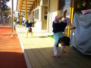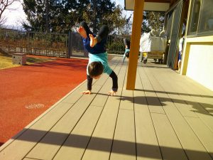 今日は暖かいテラスで逆立ち歩きを行いました✋