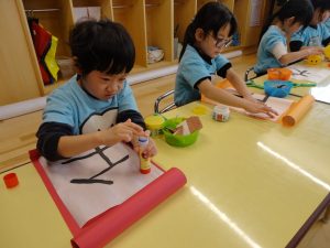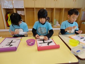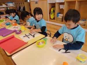 今年の干支🐎馬の習字にチャレンジしているにじ組さんです😊
