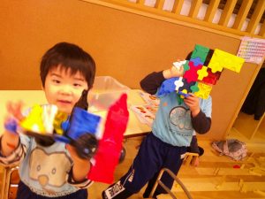 男の子はブロック遊びに料理屋🍳さんごっこで好きな遊びを楽しみました✨