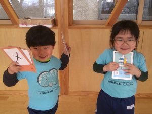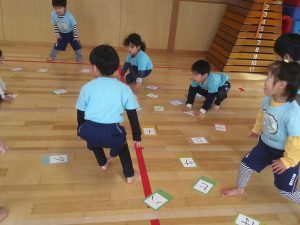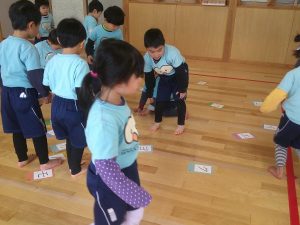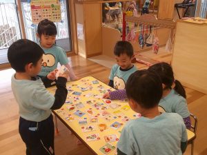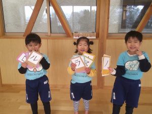 体育館ではみんなで絵カルタです!