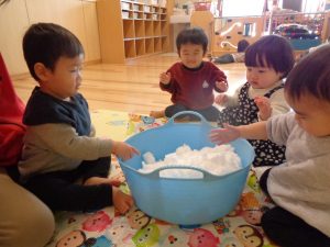 今日は雪を触ってみました!!どんな感触かなと興味津々!