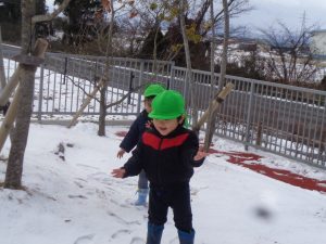 今日は少し晴れ間が見えたので、戸外で雪遊びを楽しみました🎶