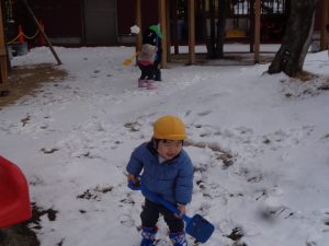 スコップで雪を掬ってみたり、集めたりと夢中で楽しんでいます💖