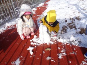 先生や友達と一緒に雪だるまを作りました🌟完成すると大喜びでした🎵