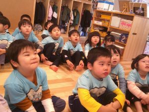 みんなしっかり椅子に座り、これからどんな楽しいことが始まるのかなとワクワクしながら先生の話を聞いています🌟