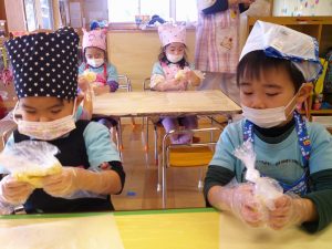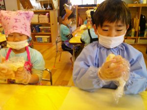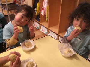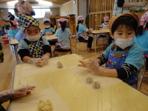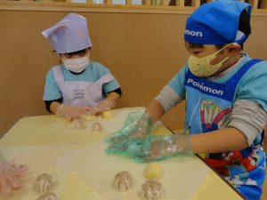 今回の食育活動は、『肉まん作り』を行いました。