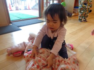 自分で足を通してみよう✨できるかな😊?