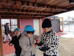 雪遊びの準備も一生懸命頑張っています✨