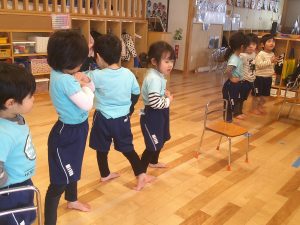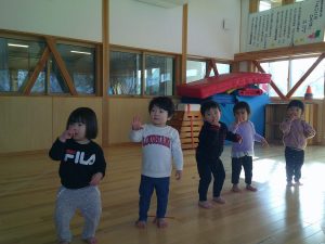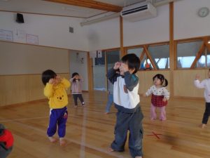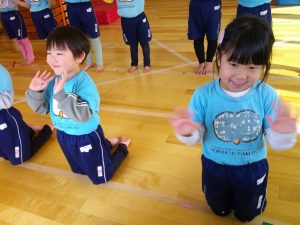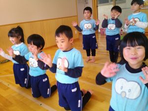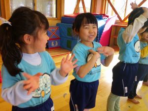 朝はお遊戯会の練習からスタートです!