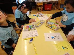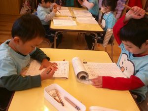新しいワークになって、ニコニコ笑顔のお友だちもいましたよ!(^^)!