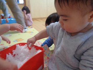 今日は、室内で雪遊びもしたよ⛄❄