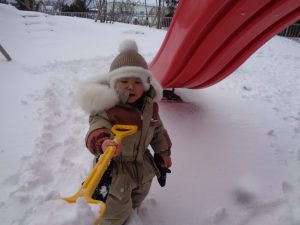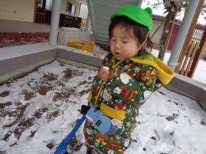 見て見て!スコップでたくさん雪がすくえたよ😊🌟