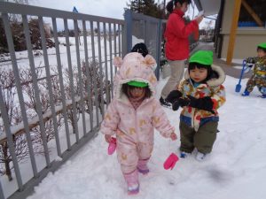 今朝も雪⛄❄が降ったことに大喜びの子ども達😊🌟