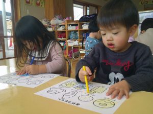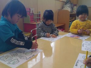 2月の絵ろうそく🕯祭りに向けて、幼児クラスで作品を製作中です🖍