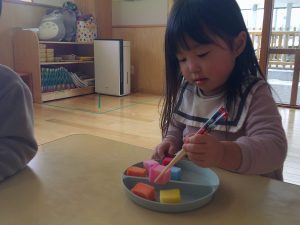 今日は、お箸遊びにチャレンジしました🎵
