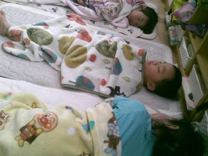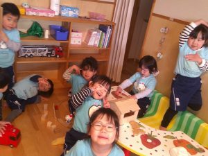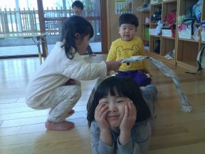 お遊戯会の予行練習が終わってリラックスムードのだいちぐみさん🐼💗