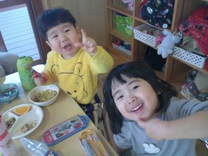 「イエ~イ!!」美味しくて子ども達もモリモリ食べていました🍀🐻