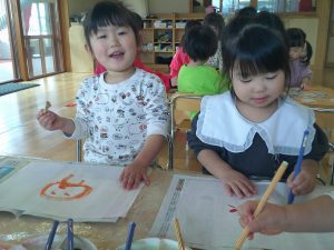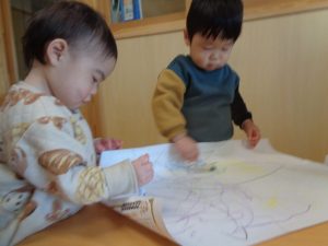 好きな色のクレヨンを選んで夢中で描きました!
