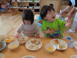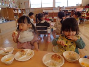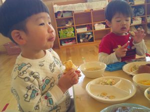 子どもたちは「美味しい😋美味しい」と